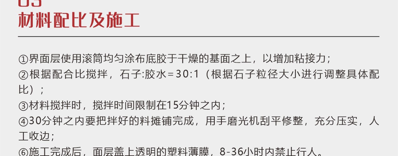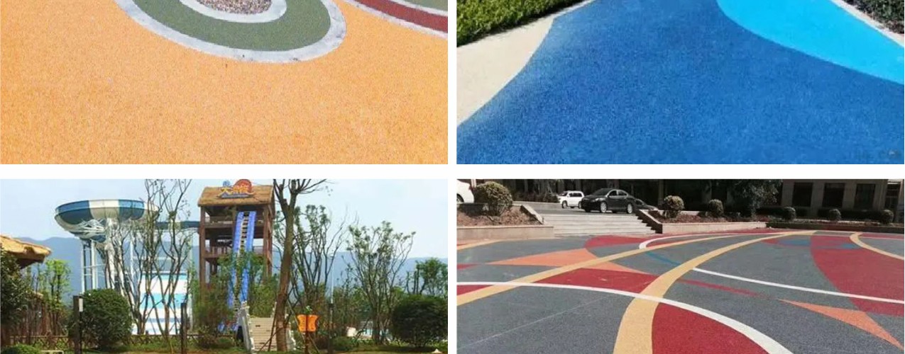 用于透水膠粘石專用石子的粘接,彩色膠粘石地坪廣泛用于市政步道、園林小路、城市廣場、高檔住宅小區、停車場、商務辦公大樓、戶外運動場所